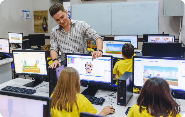 Каждый из наших преподавателей обладает обширным опытом в области информационных технологий и педагогики, создавая атмосферу, в которой будет комфортно и интересно учиться каждому ребенку.